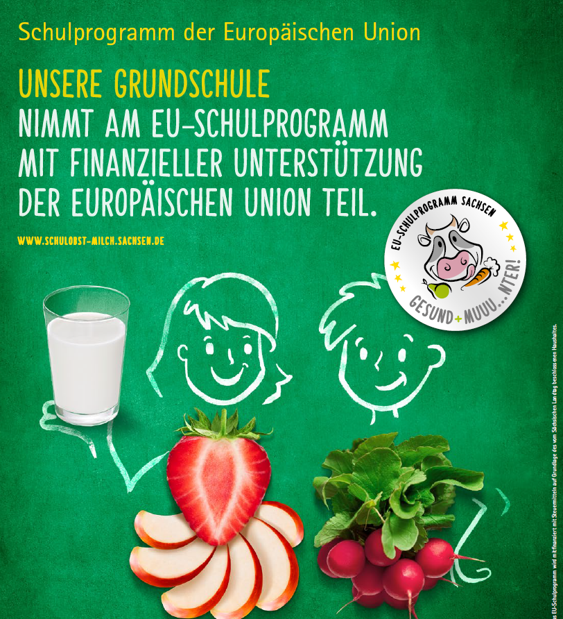 Unsere Grundschule nimmt am „EU-Schulprogramm“ mit finanzieller Unterstützung der Europäischen Union teil. Die Umsetzung erfolgt in Kooperation mit dem Hort.
